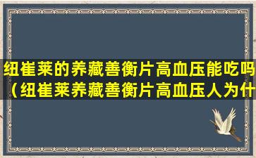 纽崔莱的养藏善衡片高血压能吃吗(纽崔莱养藏善衡片高血压人为什么不能吃)