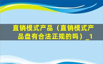 直销模式产品(直销模式产品盘有合法正规的吗)