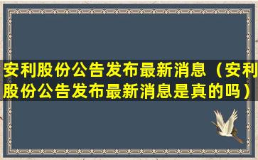 安利股份公告发布最新消息(安利股份公告发布最新消息是真的吗)