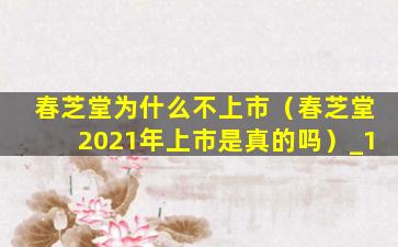 春芝堂为什么不上市(春芝堂2021年上市是真的吗)