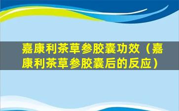 嘉康利茶草参胶囊是一种天然保健品,具有增强免疫力、抗炎等多种功效。但服用后可能出现一定反应,建议遵照说明服用,如有不适应及时就医。