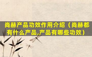 尚赫产品功效作用介绍(尚赫都有什么产品,产品有哪些功效)