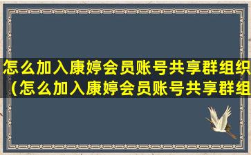 怎么加入康婷会员账号共享群组织(怎么加入康婷会员账号共享群组织呢)