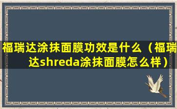 福瑞达涂抹面膜功效是什么(福瑞达shreda涂抹面膜怎么样)