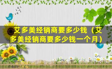 艾多美经销商要多少钱(艾多美经销商要多少钱一个月)