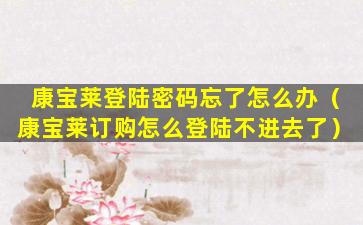 康宝莱登陆密码忘了怎么办(康宝莱订购怎么登陆不进去了)