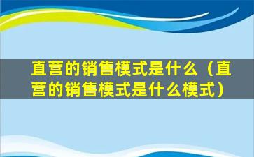 直营的销售模式是什么(直营的销售模式是什么模式)