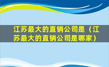 江苏最大的直销公司是(江苏最大的直销公司是哪家)