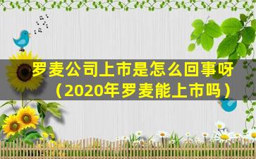 罗麦公司上市是怎么回事呀(2020年罗麦能上市吗)