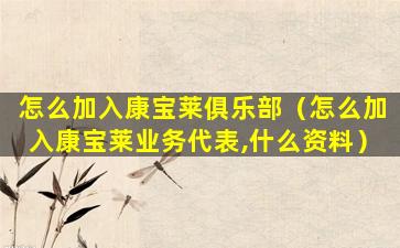 怎么加入康宝莱俱乐部(怎么加入康宝莱业务代表,什么资料)