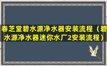春芝堂碧水源净水器安装流程(碧水源净水器迷你水厂2安装流程)
