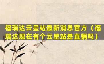 福瑞达云星站最新消息官方(福瑞达现在有个云星站是直销吗)