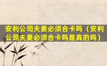 安利公司夫妻必须合卡吗(安利公司夫妻必须合卡吗是真的吗)