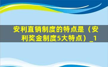 安利直销制度是一种独特的商业模式,拥有以下特点:
