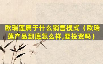 欧瑞莲属于什么销售模式(欧瑞莲产品到底怎么样,要投资吗)