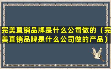 完美直销品牌是什么公司做的(完美直销品牌是什么公司做的产品)