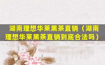 湖南理想华莱黑茶直销(湖南理想华莱黑茶直销到底合法吗)
