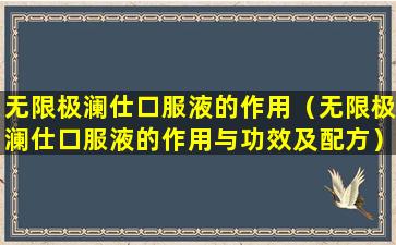 无限极澜仕口服液的作用(无限极澜仕口服液的作用与功效及配方)