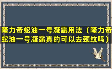 隆力奇蛇油一号凝露用法(隆力奇蛇油一号凝露真的可以去颈纹吗)