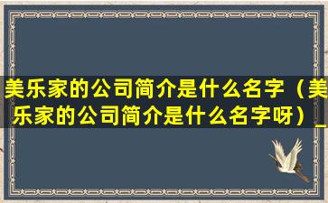 美乐家的公司简介是什么名字(美乐家的公司简介是什么名字呀)