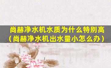 尚赫净水机水质为什么特别高(尚赫净水机出水量小怎么办)