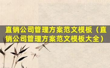 直销公司管理方案范文模板(直销公司管理方案范文模板大全)