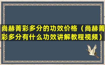 尚赫菁彩多分的功效价格(尚赫菁彩多分有什么功效讲解教程视频)