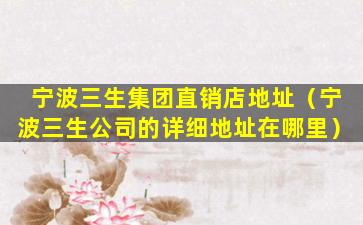宁波三生集团直销店地址(宁波三生公司的详细地址在哪里)