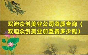 双迪众创美业公司资质查询(双迪众创美业加盟费多少钱)