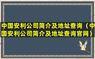 中国安利公司简介及地址查询(中国安利公司简介及地址查询官网)