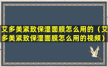 艾多美紧致保湿面膜怎么用的(艾多美紧致保湿面膜怎么用的视频)