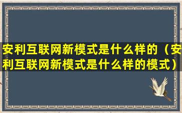 安利互联网新模式是什么样的(安利互联网新模式是什么样的模式)