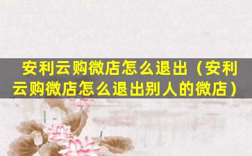 安利云购微店怎么退出(安利云购微店怎么退出别人的微店)