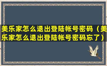 美乐家怎么退出登陆帐号密码(美乐家怎么退出登陆帐号密码忘了)