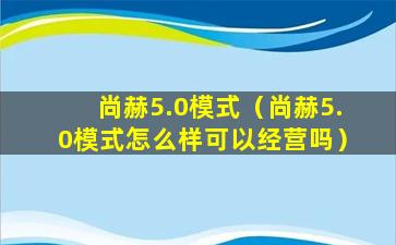 尚赫5.0模式(尚赫5.0模式怎么样可以经营吗)