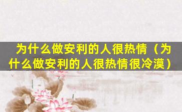 为什么做安利的人很热情(为什么做安利的人很热情很冷漠)