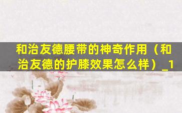 和治友德腰带的神奇作用(和治友德的护膝效果怎么样)