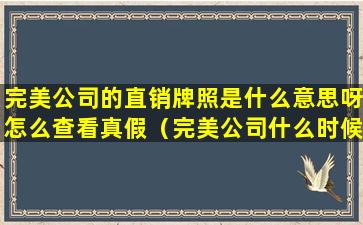 1、完美公司的直销牌照是什么意思呀怎么查看真假
