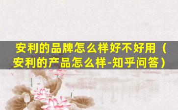 安利的品牌怎么样好不好用(安利的产品怎么样-知乎问答)