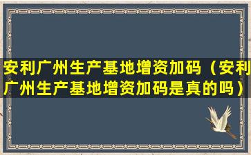 安利广州生产基地增资加码(安利广州生产基地增资加码是真的吗)