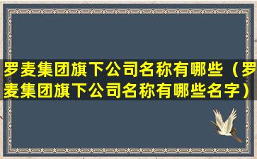 罗麦集团旗下公司名称有哪些(罗麦集团旗下公司名称有哪些名字)