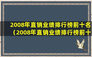2008年直销业绩排行榜前十名(2008年直销业绩排行榜前十名有哪些)