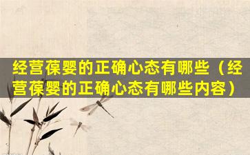 经营葆婴的正确心态有哪些(经营葆婴的正确心态有哪些内容)