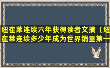 纽崔莱连续六年获得读者文摘(纽崔莱连续多少年成为世界销量第一)