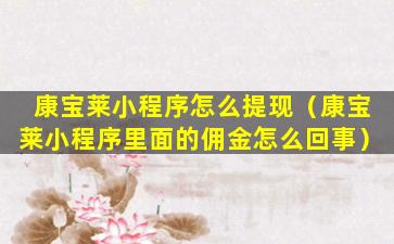 康宝莱小程序怎么提现(康宝莱小程序里面的佣金怎么回事)
