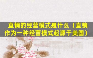 直销的经营模式是什么(直销作为一种经营模式起源于美国)