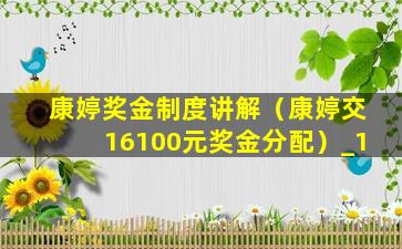 康婷奖金制度讲解(康婷交16100元奖金分配)