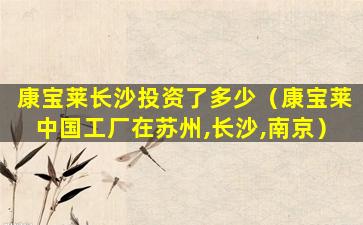 康宝莱长沙投资了多少(康宝莱中国工厂在苏州,长沙,南京)