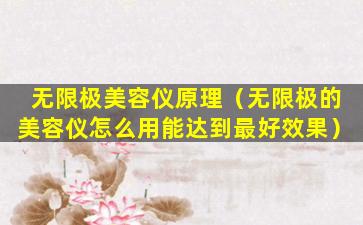 无限极美容仪原理(无限极的美容仪怎么用能达到最好效果)