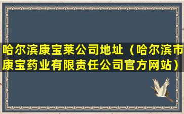 哈尔滨康宝莱公司地址(哈尔滨市康宝药业有限责任公司官方网站)